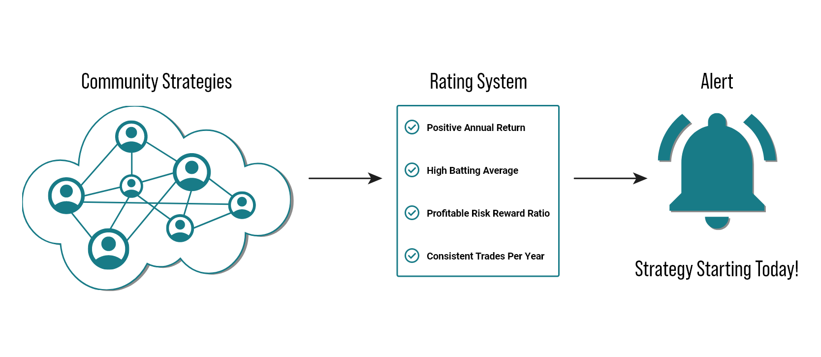 Piggyback on other traders' top strategies with our easy to use Discover tool. All the best backtested strategies from our members get routed to the Discover tool automatically. With one click you can follow and get alerts for top crowdsourced strategies. This is the secret sauce of our platform.